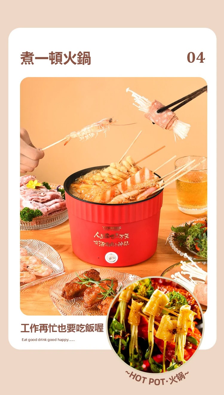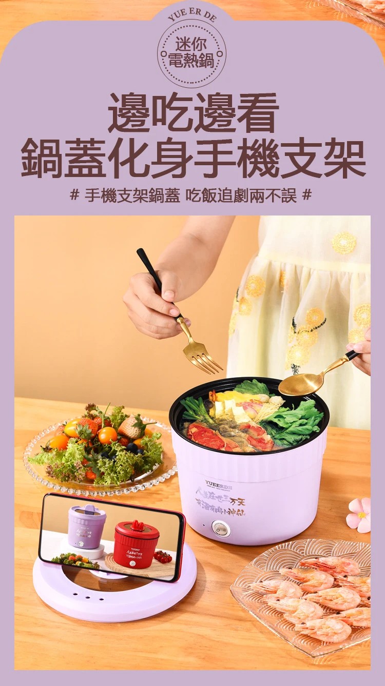 【開學季特惠】顏值實力並存的多功能一體小型家用電火鍋,煮粥,燉湯,刷火鍋,一鍵智能操作!不沾內膽易清洗!