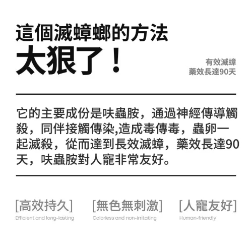 【呋蟲胺】壹切害蟲的克星!高效滅蟲,壹次噴灑,半年無憂。無色無味,人寵安全,輕松驅除蟑螂、螞蟻等壹切害蟲。守護家園,就選呋蟲胺!